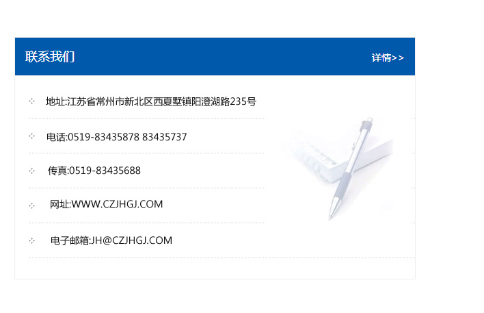 傳真:0519-83435688    郵編:213135    網址:WWW.czjhgj_com.hxhuaer.com    電子郵箱:JH@czjhgj_com.hxhuaer.com